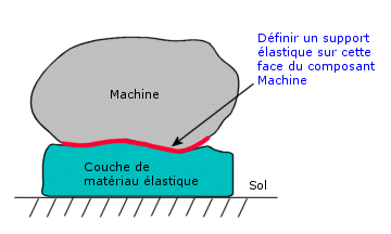 Connecteur - Appui élastique Un Appui élastique définit une fondation élastique entre les faces sélectionnées d'une pièce ou d'un assemblage et le sol. Ce connecteur résiste à la traction et à la compression. Type Faces pour l'appui élastique Faces planes ou non planes. Raideur Unités Distribuée La valeur de la raideur par unité de surface. La raideur totale équivalente est égale à la surface de projection commune multipliée par la raideur distribuée. Totale La valeur de la raideur totale. La raideur totale est distribuée uniformément sur les faces sélectionnées. Normale Raideur normale aux faces. Cisaillement Raideur dans le plan des faces. Paramètres des symboles Editer la couleur Sélectionnez une couleur pour les symboles. Taille des symboles Définissez la taille des symboles. Montrer l'aperçu Active/désactive l'affichage des symboles de connecteur dans la zone graphique. Remarques Disponible pour les études statiques, fréquentielles et de flambage. Non disponible pour les coques composites. Une raideur distribuée en un point de la face représente la densité de raideur associée à une surface infiniment petite autour de ce point. La raideur tangentielle en un point est supposée égale dans toutes les directions tangentielles à la face en un point. Utilisez des ressorts élastiques pour simuler les fondations élastiques et les amortisseurs de chocs. Sujet parentConnecteurs Résumé des connecteurs