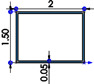- Un carré ou un rectangle, créé à partir de l'origine de l'esquisse, avec des cotes nommées :