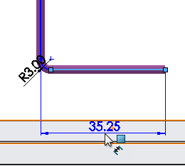 A l'aide de l'outil Cotation intelligente (), sélectionnez le tuyau à décaler puis l'objet de référence. Sur l'image ci-dessous, l'utilisateur a sélectionné le segment du tuyau à décaler ainsi que la base comme référence.