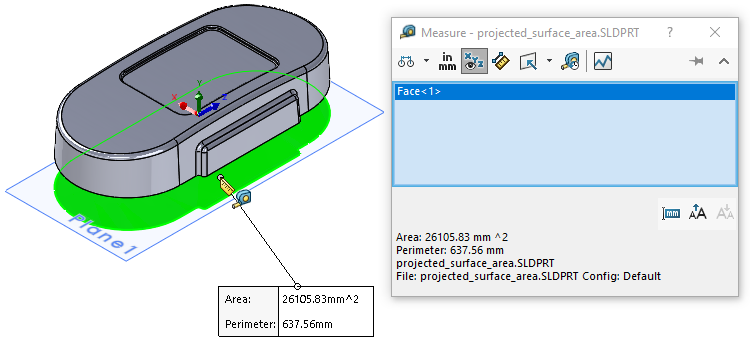 Calcul de la superficie projetée Vous pouvez calculer la superficie projetée des modèles à l'aide des outils Entités de silhouette et Mesurer, ce qui est utile pour le démoulage de la pièce. Pour calculer la superficie projetée : Dans un modèle, sélectionnez un plan existant ou créez un plan décalé par rapport à la surface du modèle à calculer. Dans l'arbre de création FeatureManager, sélectionnez ce plan et cliquez sur Esquisse . Cliquez sur Entités de silhouette (barre d'outils Esquisse) ou sur Outils > Outils d'esquisse > Entités de silhouette . Dans le PropertyManager, sélectionnez Silhouette externe et, pour Entités vers silhouette, sélectionnez le modèle. Cela projette une esquisse des entités de la silhouette externe du modèle sur le plan. Cliquez sur Surface plane (barre d'outils Surfaces) ou sur Insérer > Surfaces > Planes . Dans le PropertyManager, pour Entités de limites , Esquisse actuelle apparaît. Cliquez sur pour créer une surface plane de l'esquisse projetée. Cliquez sur Mesurer (barre d'outils Outils) ou sur Outils > Evaluer > Mesurer . Sélectionnez la surface plane pour afficher la superficie projetée du modèle. Sujet parentSurfaces Corps surfaciques Fonctions surfaciques Contrôles de surface