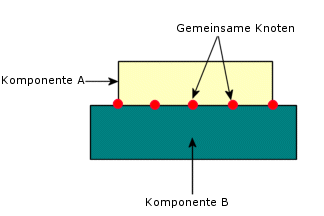 Darstellung von gemeinsamen Netzknoten an Komponentenbegrenzungen. Die beiden Komponenten werden als ein Körper vernetzt. |