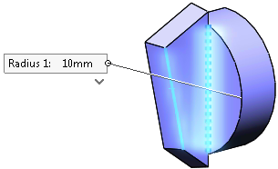 Manche Beschreibungen, zum Beispiel die für Fasen, enthalten Werte, die bearbeitet werden können, so dass Sie die Größe des Elements ändern können.
