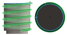 Mithilfe der Optionen im Werkzeug Gewinde können Sie Spiralgewinde auf zylindrischen Körpern erstellen. Sie müssen sorgfältig vorgehen, da die Interaktion dieser Optionen manchmal subtile Fehler verursacht.