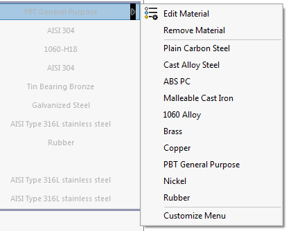 Sie können Komponentenmaterialien direkt in der Liste der Baugruppenvisualisierung hinzufügen, bearbeiten oder entfernen.