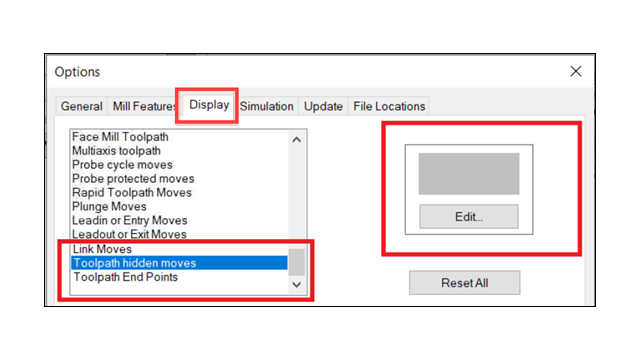 Anzeigefarbe für verdeckte Verschiebungen des Werkzeugwegs Auf der Registerkarte Anzeige des Dialogfelds Optionen können Sie eine Farbe zuweisen, um verdeckte Verschiebungen des Werkzeugwegs im Grafikbereich anzuzeigen. Übergeordnetes ThemaSOLIDWORKS CAM Baugruppenunterstützung für den Drehmodus Anpassen der Farbeinstellungen für Werkzeugweg-Endpunkte Filter für Fräs- und Drehwerkzeuge und Baugruppen mit Text Verwaltung mehrerer Technologiedatenbanken Unterstützung für nichtplanare Oberflächen für die Sondierung der Z-Achse Überarbeiteter CNC-Oberflächenparameter für mehr Übersichtlichkeit Unterstützte Plattformen für SOLIDWORKS CAM