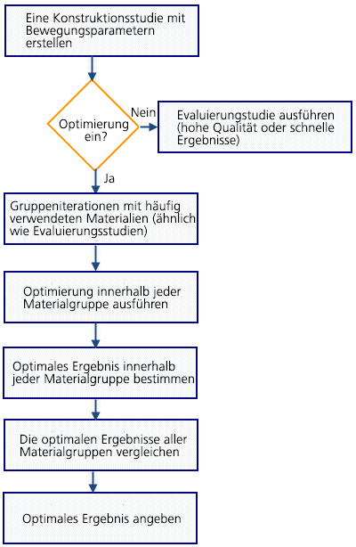 Sie können Material als Variablen in Optimierungskonstruktrionsstudien aufnehmen. Die Software erstellt Interpolationsgruppen und führt den Optimierungsprozess innerhalb jeder Gruppe durch.