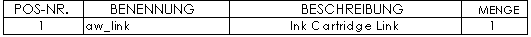 Wenn Sie eine Stückliste von der Standard-Stücklistenvorlage, bom-standard, erstellen, hat die entstehende Standard-Stückliste vier Spalten: POS-NR., BENENNUNG, BESCHREIBUNG und MENGE. Sie können benutzerdefinierte Eigenschaften zur Definition anderer Stücklisten-Spalten verwenden.