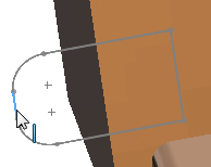 Skizzenkontur, die über eine Fläche überhängt. Wählen Sie die Kontur auf dem Bereich aus, der die Fläche nicht berührt.