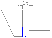Die Skizze wird gelöst, indem die untere Bemaßung auf einen Wert > 25 geändert wird, so dass die untere horizontale Linie nicht mehr die Länge 0 hat.