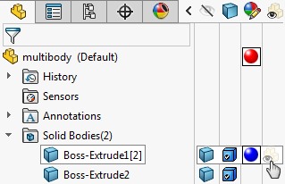 2. Um die Anzeigeeinstellungen für einen bestimmten Körper eines Mehrkörper-Teils zu ändern, klappen Sie den Ordner Volumenkörper auf.
