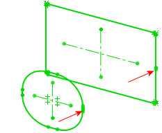 4. Wählen Sie im Grafikbereich beide Skizzen aus. Wählen Sie für die einzelnen Profile den Punkt, von dem aus die Bahn der Ausformung verlaufen soll.