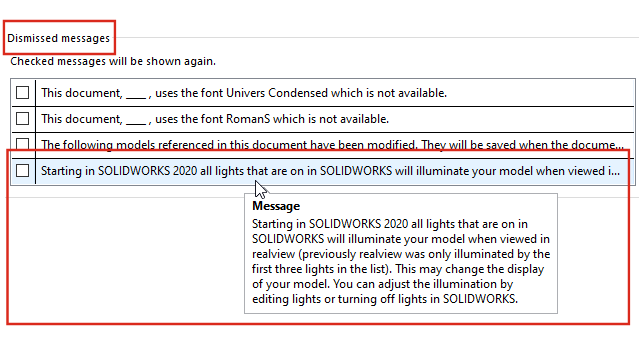 Non ripetere la domanda (o un'opzione simile) in una finestra di dialogo. Selezionare i messaggi eliminati per ripristinarli. I messaggi vengono visualizzati nell'ordine in cui sono stati soppressi. Se un messaggio viene troncato, passare il mouse sopra di esso per visualizzare il messaggio completo.