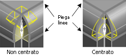 Rende lo scarico angolo tangente alle linee di piegatura quando si seleziona Centrato sulle linee di piegatura.