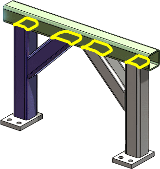 Si intende creare cordoni di saldatura tra ciascuno dei quattro cordoni di supporto e la trave principale. |