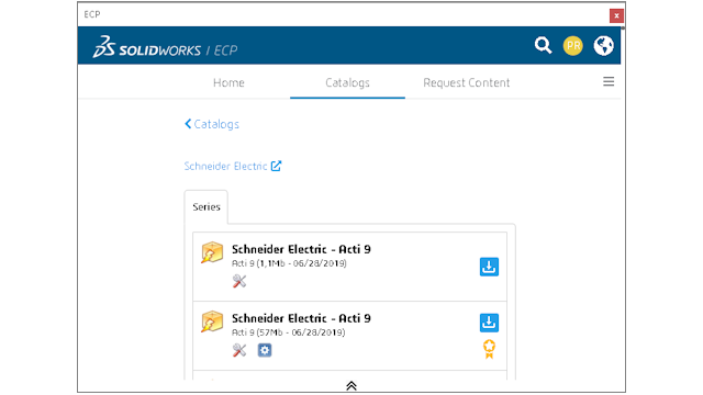 Electrical Content Portal (ECP) consente di scaricare contenuti, ad esempio parti del produttore, riferimenti del cavo e file per layout 2D.