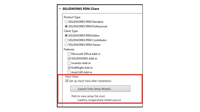 Gli amministratori possono impostare una vista locale del vault quando creano un'immagine amministrativa per gli utenti client SOLIDWORKS Enterprise PDM.