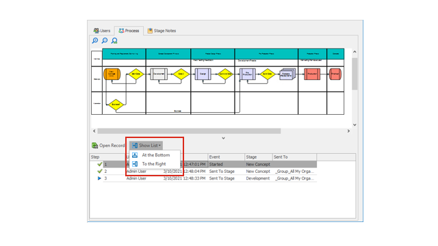 È possibile specificare la posizione delle linee della cronologia nella scheda Processo da visualizzare in basso o a destra. Ciò migliora l'utilizzo dello schermo in base al layout del diagramma di processo. |