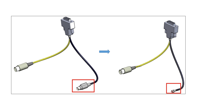 Nel PropertyManager Importa dati elettrici, selezionare Sostituisci componente per sostituire il connettore esistente con quello nuovo nell'elenco Da/A. Selezionare Elimina segmento esistente e creare nuove linee guida se il nuovo connettore non ha le stesse connessioni.