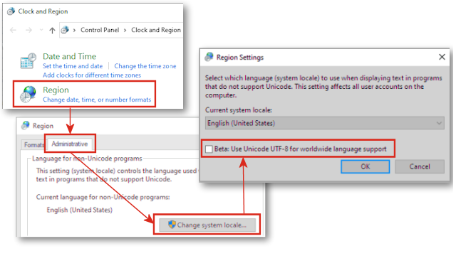 In Windows 10 versione 1803 o successiva, se è stata selezionata l'opzione Beta: utilizzare Unicode UTF-8 per il supporto della lingua a livello mondiale, molti elementi dell'interfaccia utente in SOLIDWORKS mostravano un testo confuso. La maggior parte di questi problemi è stata risolta in SOLIDWORKS® 2022.