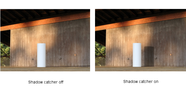 È possibile trasformare qualsiasi geometria di un oggetto di parte in un oggetto del rilevatore ombre. I rilevatori ombra mostrano lo sfondo e le ombre proiettate dalla luce nella scena. Ad esempio, è possibile creare una parete e specificarla come rilevatore ombre.