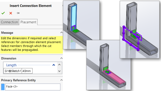 Elemento di connessione per sistemi struttura SOLIDWORKS supporta gli elementi di connessione per i sistemi struttura. È possibile definire l'elemento di connessione e inserirlo su una parte del sistema struttura. Indice Definizione e inserimento degli elementi di connessione PropertyManager Definizione connessione - Scheda Riferimenti La scheda Riferimenti nel PropertyManager Definizione connessione consente di creare un elemento di connessione per un sistema struttura da una parte. PropertyManager Definizione connessione - Scheda Quote È possibile selezionare le quote dell'elemento di connessione e modificarle quando si inserisce l'elemento di connessione. PropertyManager Inserisci connessione Questo PropertyManager consente di inserire l'elemento di connessione su una parte del sistema struttura. Argomento principaleSistema struttura e saldature Supporto estremità chiusa Architettura delle proprietà personalizzate PropertyManager degli angoli complessi Membri secondari Finestra di dialogo Proprietà