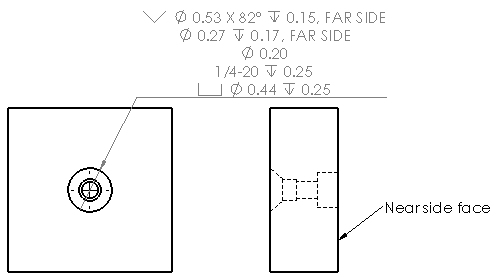 寸法テキストの順序は逆にできます。 寸法(Dimension) PropertyManager の寸法テキスト(Dimension Text)で寸法テキストの順序を反転(Reverse Callout Order)を選択します。 寸法テキストを裏側の面に置くときは、寸法テキストの順序の反転が必要になることがあります。