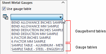 板金パラメータの指定にゲージ/ベンド テーブルを使用 板金ゲージテーブルを部品全体にデフォルトの値を割り当てるために使うことができます。 しかし、デフォルト値と異なる厚みとベンド半径値を板金ゲージ/ベンド テーブルでエッジフランジのような、特定のフィーチャーに適用することができます。 厚みとベンド半径の値をコントロールするには: 板金部品を開き、板金フィーチャーを右クリックして フィーチャー編集 をクリックします。 板金ゲージ で ゲージ テーブルを使用 を選択し、板金ゲージ/ベンド テーブルを選び、すべての下流のフィーチャーの厚みと半径値を取得します。 板金のパラメータ で厚みをコントロールするために次のいずれかを行います: テーブルからゲージ フェーブルを選択します。 厚みの上書き を選択し、厚みの値を編集します。 半径の上書き 選択し、ベンドの半径値を変更します。 親トピック板金ゲージ/ベンド テーブル(Sheet Metal Gauge/Bend Table) ゲージ/ベンド テーブルと異なる値をベンド半径値として適用(Applying a Bend Radius Value Different from the Gauge/Bend Table Value) 追加フィーチャーにベンド半径値をマニュアルで指定