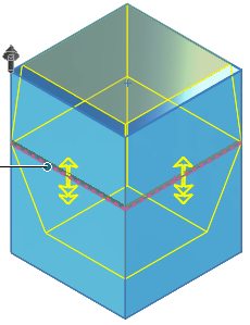 ラインの各セグメントに対して異なった抜き勾配の方向を指定するには、他の面 (Other Face)を指定できます。 パーティング ライン(Parting Lines) ボックスのエッジ名をクリックし、さらに他の面(Other Face)をクリックします。 このオプションは、パーティング ライン抜き勾配を作成し、方向 2(Direction 2)に抜き勾配角度(Draft angle)を指定した場合は使用できません。 |