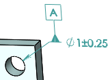 選択されたフィーチャーがデータムと定義されるか、あるいは幾何公差によってコントロールされると、サイズ寸法とデータム記号と幾何公差はアノテート アイテムグループとして自動的に組み合わされます。