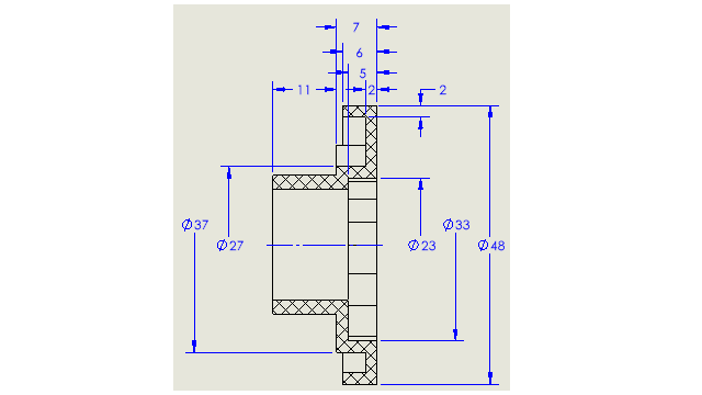 対称線形直径寸法 表示される引出線の片側のみを必要とする直径寸法に対して、対称線形直径寸法を作成できます。 これは、回転構成部品と詳細断面図がある図面で便利です。 目次 対称線形直径寸法の作成 どの図面ビューでも対称直線直径寸法を使用できますが、引出線の片側のみを必要とする図面ビューに最適です。 親トピック図面の寸法(Dimensions in Drawings)