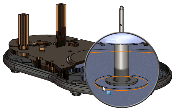 虫メガネの使用 虫メガネを使用すれば、全体のビューを変更することなくモデルの観察や選択を行うことが可能です。 これにより合致作成時等における要素の選択が容易になります。 虫メガネを用いてアセンブリでの要素選択を容易にするには: 次のいずれかを実行します: 観察する領域にポインタを移動し、G キーを押します。 グラフィックス領域内の何もないスペースで右クリックし、コンテキスト ツールバーの 虫メガネ選択 (Magnified Selection) を選択します。 虫メガネが開きます。 虫メガネの開始に使用するキーボード ショートカットをカスタマイズするには、ツール(Tools) > ユーザー定義(Customize)をクリックします。 キーボード(Keyboard)タブで虫メガネ(Magnifying Glass)を選び、ショートカット キーを入力します。 モデル周囲でポインタを移動します。虫メガネが動く間、拡大の倍率は維持されます。 モデルは動きません。 Ctrl キーを押しながらマウス中央ボタンでドラッグすることにより、虫メガネとともにパニング を行うことが可能です。 マウスホイルのスクロールにより拡大倍率が変わります。 虫メガネの拡大倍率が変わる間も、モデルが動くことはありません。 Alt キーを押しながらマウス ホイールをスクロールすると、画面に対して平行な断面表示が行われます。 Ctrl キーを押しながら、要素を選択します。 Ctrl キーを押さないで要素の選択を行うと、虫メガネは閉じます。 合致作成等の作業を完了します。 クリックにより、虫メガネを閉じます。 G または Esc キーでも同じ操作が可能です。 親トピック図面ビューの操作 スケッチ修復(Repair Sketch)
