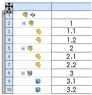 をクリックして、アセンブリ構造列が隠れていればそれを表示します。