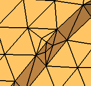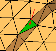 メッシュに検出された穴を三角形要素でふさぎます。 赤でハイライト表示されている穴の境界をクリックすると、新しい三角形要素で穴がふさがれます。