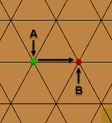 A -> B オプションを選択すると、緑色の節点 A は赤色の節点 B の位置に移動します。隣接する要素の結合性は、節点 A の新しい位置によって異なります。節点 A と B はマージされます。