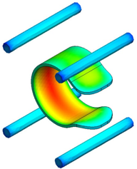 Cool 解析には、金型、キャビティ、金型内の冷却システムが含まれます。 温度変化は、キャビティが充填される速度と比較して、ゆっくり発生します。