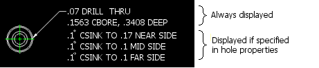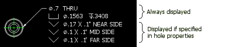 구멍 속성 표시기를 추가하여 도면에서 기계 Toolbox 구멍에 치수와 설명이 포함된 주석을 답니다.