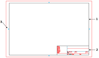 프레임 및 제목 블록은 지정된 사각형 영역에 맞게 크기가 조정된 후 삽입됩니다. 배율은 자동으로 계산됩니다. 시트 모드에서는 프레임 영역을 지정할 수 없습니다.