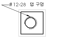 구멍 가공 마법사로 작성된 나사산 표시가 있는 구멍은 구멍 지름이 탭 드릴의 지름이 됩니다. 나사산 표시가 없는 탭 구멍은 구멍 지름이 나사산의 바깥 지름이 됩니다.