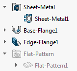 FeatureManager 디자인 트리 검사 베이스 플랜지 피처로 세 개의 새 피처가 FeatureManager 디자인 트리에 만들어집니다. 판금 폴더 판금 바디가 FeatureManager 디자인 트리의 판금 폴더에서 정의된 파라미터를 따르는지 제어하는 기본 동작을 정의할 수 있습니다. 판금 폴더에는 개별 판금 바디에 대한 판금 정의가 포함되어 있습니다. 이 폴더에서 모든 바디에 공통된 판금 파라미터를 정의하거나 각 바디를 개별적으로 설정할 수 있습니다. 판금 폴더에서 파라미터를 재정의하려면 문서 속성 - 판금을 참조하십시오. Sheet-Metal1 여기에는 기본 밴드(굽힘) 변수가 포함됩니다. 기본 굽힘 반경, 굽힘 허용, 굽힘 차감 또는 기본 릴리프 유형을 편집하려면 판금1을 오른쪽 클릭하고 피처 편집을 선택합니다. Base-Flange1 판금 파트의 첫 번째 솔리드 피처입니다. Flat-Pattern1 전개도1은 전개도 폴더에 있고 판금 파트를 전개한 것입니다. 이 피처는 기본으로 파트가 굽힘 상태일 때 기능 억제됩니다. 피처의 기능 억제를 해제하여 판금 파트를 평평하게 만듭니다. 전개도1이(가) 다음과 같은 경우: 기능 억제 상태이면, 모든 새로운 피처가 FeatureManager 디자인 트리에서 위에 삽입됩니다 기능 억제 해제 상태이면, 모든 새로운 피처가 FeatureManager 디자인 트리에서 아래에 삽입되며 접혀진 파트에서는 표시되지 않습니다 SOLIDWORKS 2013 이전 버전에서 작성된 판금 모델은 판금 및 전개도 폴더를 포함하지 않는 다른 아키텍처를 사용합니다. 문서 템플릿이 이러한 이전 아키텍처를 사용하는 경우 SOLIDWORKS 2013 이후 버전에서 다시 작성해야 합니다. SOLIDWORKS 2013 이전 버전에서 작성된 모델 SOLIDWORKS 2013 이후 버전에서 작성된 모델 상위 주제판금 도구 사용하기