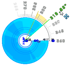 회전, 구배와 트라이어드 링으로 동적 단면 평면을 회전하려할 때 각 눈금자가 표시됩니다.