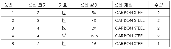 도면에서 용접 테이블을 삽입할 수 있습니다.