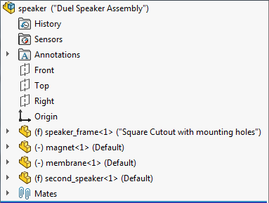 부품 설정 설명은 부품 설정 이름과 같으며, 기본적으로 표시되지 않습니다. 따라서 FeatureManager 디자인 트리에 표시될 부품의 설정 설명은 새로 지정해야 합니다. 파트 파일에서 부품 설정 설명은 변경 할 수 있습니다.