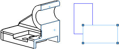- 도면 문서에서, 모델 면, 닫힌 프로파일의 선분, 모델 모서리선과 스케치 요소로 형성된 영역을 선택합니다. 이 때, 여러 항목을 선택할 수 있습니다.