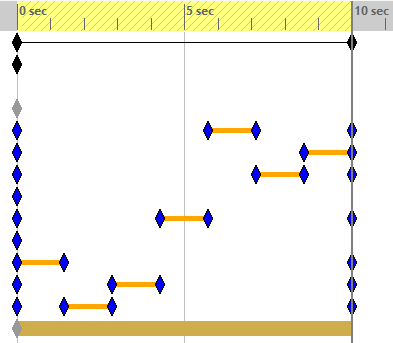 사용자가 선택한 지속 시간시작 시간을 기준으로 하여 타임라인이 변경막대와 키 포인트로 채워집니다.