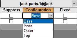 - 설정 테이블 대화 상자에서 파라미터 편집을 방지하려면 열 머리글을 오른쪽 클릭하고 모델 편집 차단을 클릭합니다.