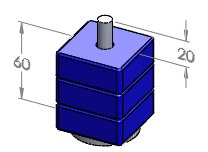 A montagem tem três configurações. Cada configuração tem blocos de diferentes tamanhos e, portanto, valores distintos para H. O acessório de fixação é criado no contexto da montagem, e sua altura é definida com um deslocamento de 20 mm em relação à face do bloco superior.