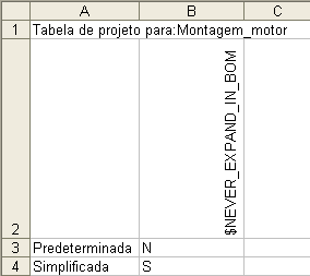 Exemplo de uma tabela de projeto que controla como a montagem é listada na BOM: