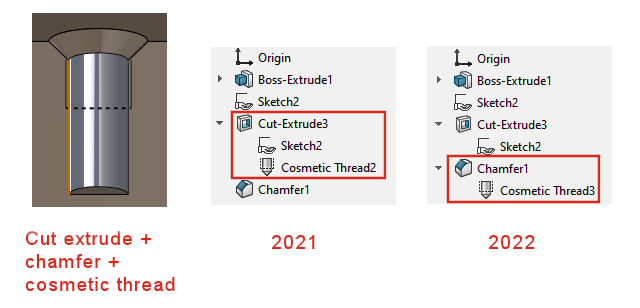 Для шаблонов деталей, созданных в SOLIDWORKS 2022 и более поздних версиях, можно сохранить устаревшие параметры глубины и владения элементами. Перед добавлением условных изображений резьбы в шаблонах деталей выберите и снимите флажок Применить поведение нового условного изображения резьбы к новым деталям. Этот флажок установлен по умолчанию для новых шаблонов деталей, но снят для устаревших шаблонов деталей. Этот параметр включен только для новых шаблонов деталей; для документов деталей он отключен.