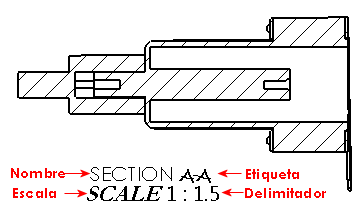 Visualiza la etiqueta de vista con el nombre y la etiqueta en pila en la parte superior de la escala. |