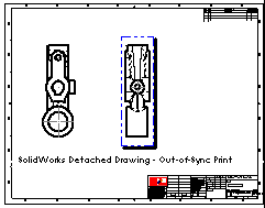 Se imprime la filigrana Dibujo separado de SOLIDWORKS - Impresión no sincronizada en dibujos separados si el dibujo no está sincronizado con el modelo.